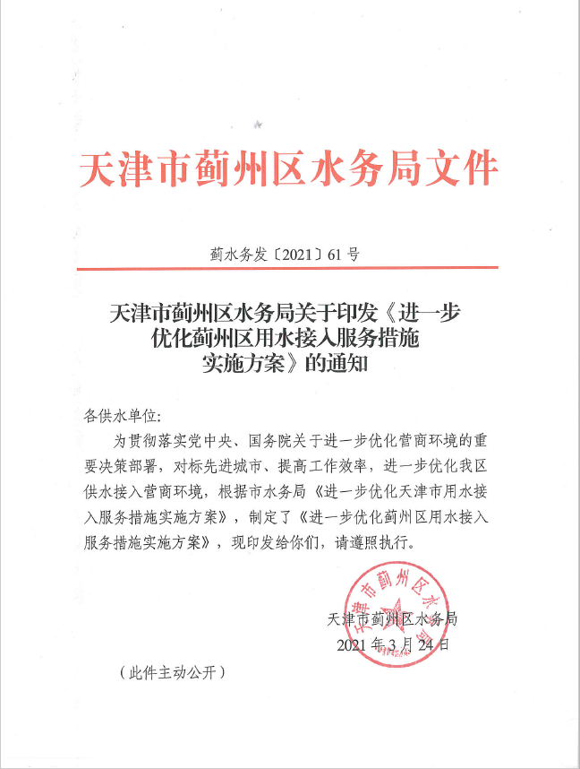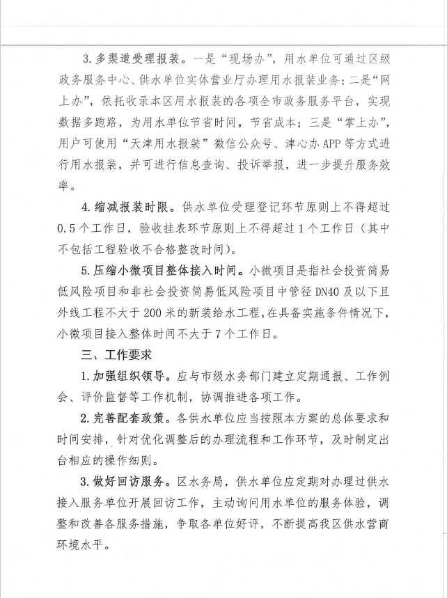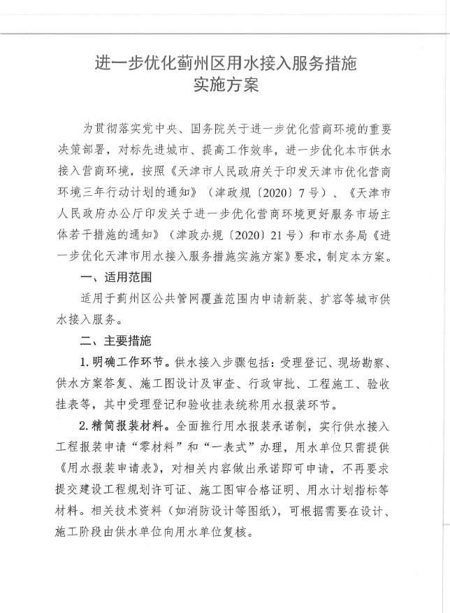 進一步優(yōu)化薊州區(qū)用水接入服務(wù)措施實施方案