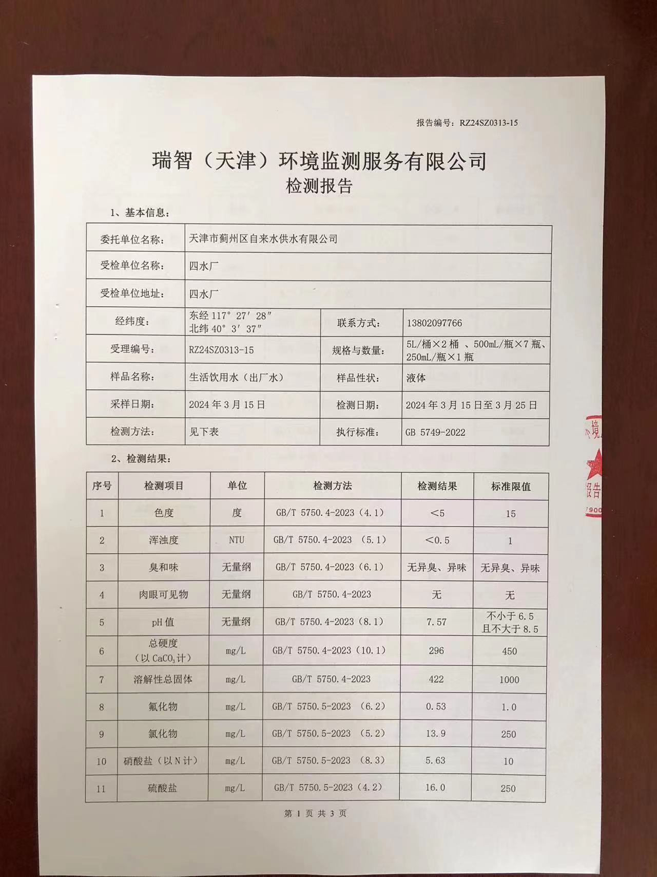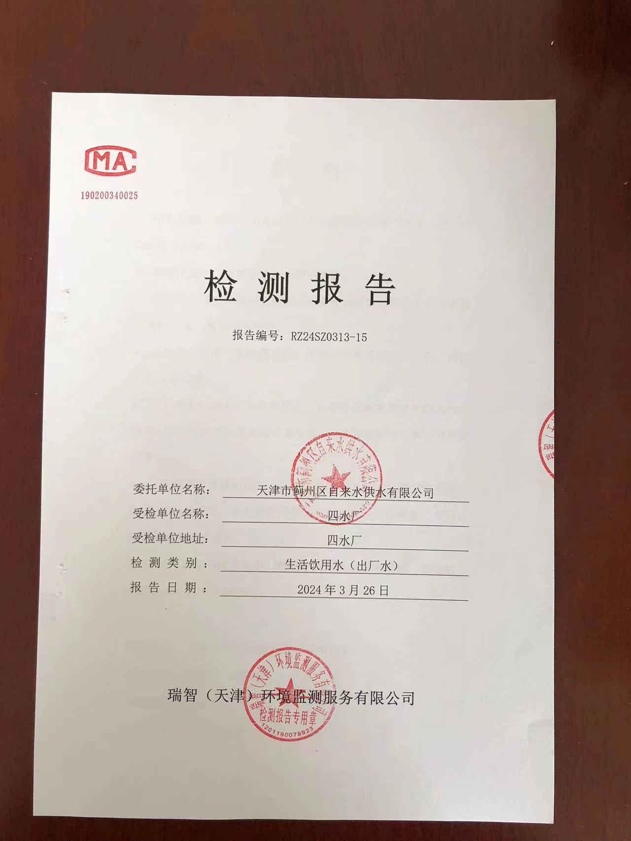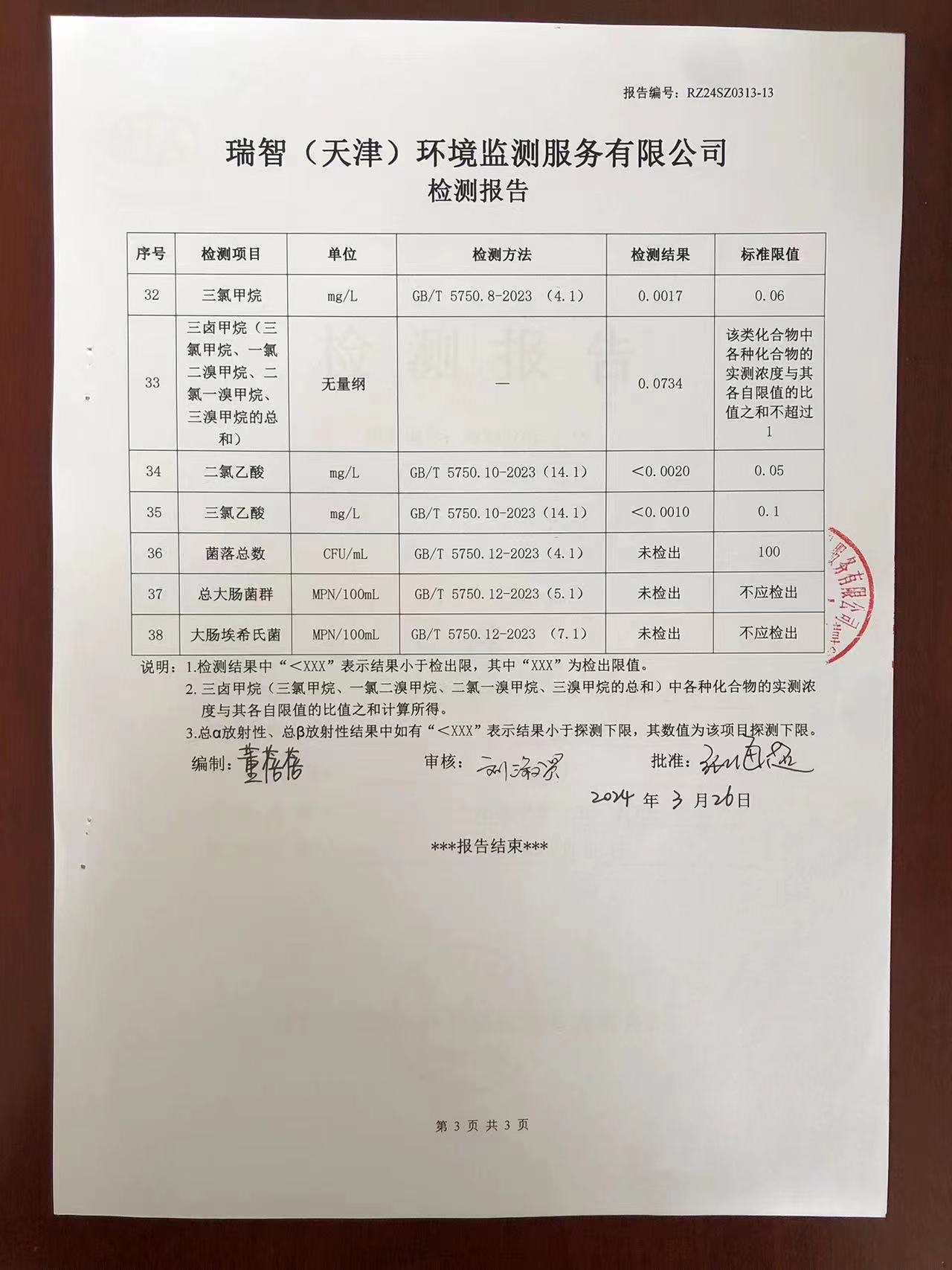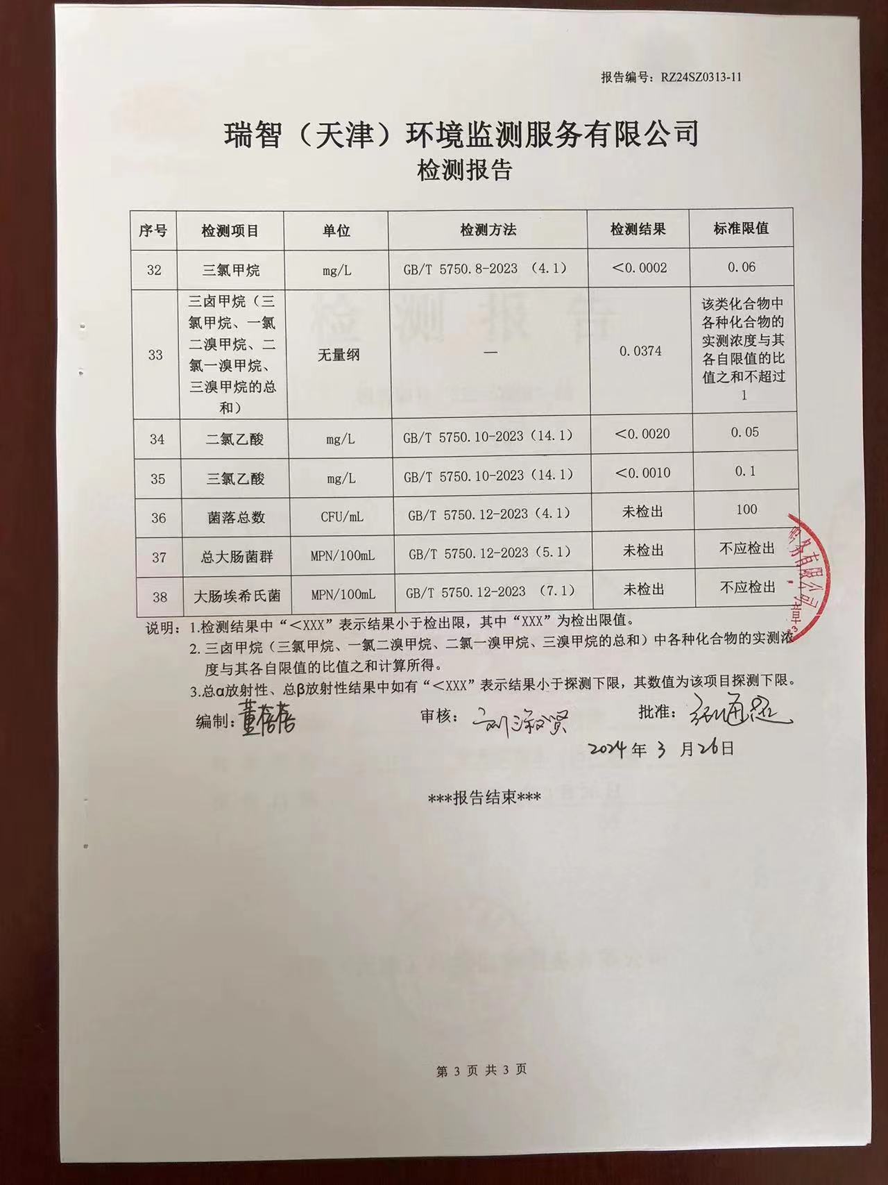 2024年3月份水質(zhì)檢測報(bào)告