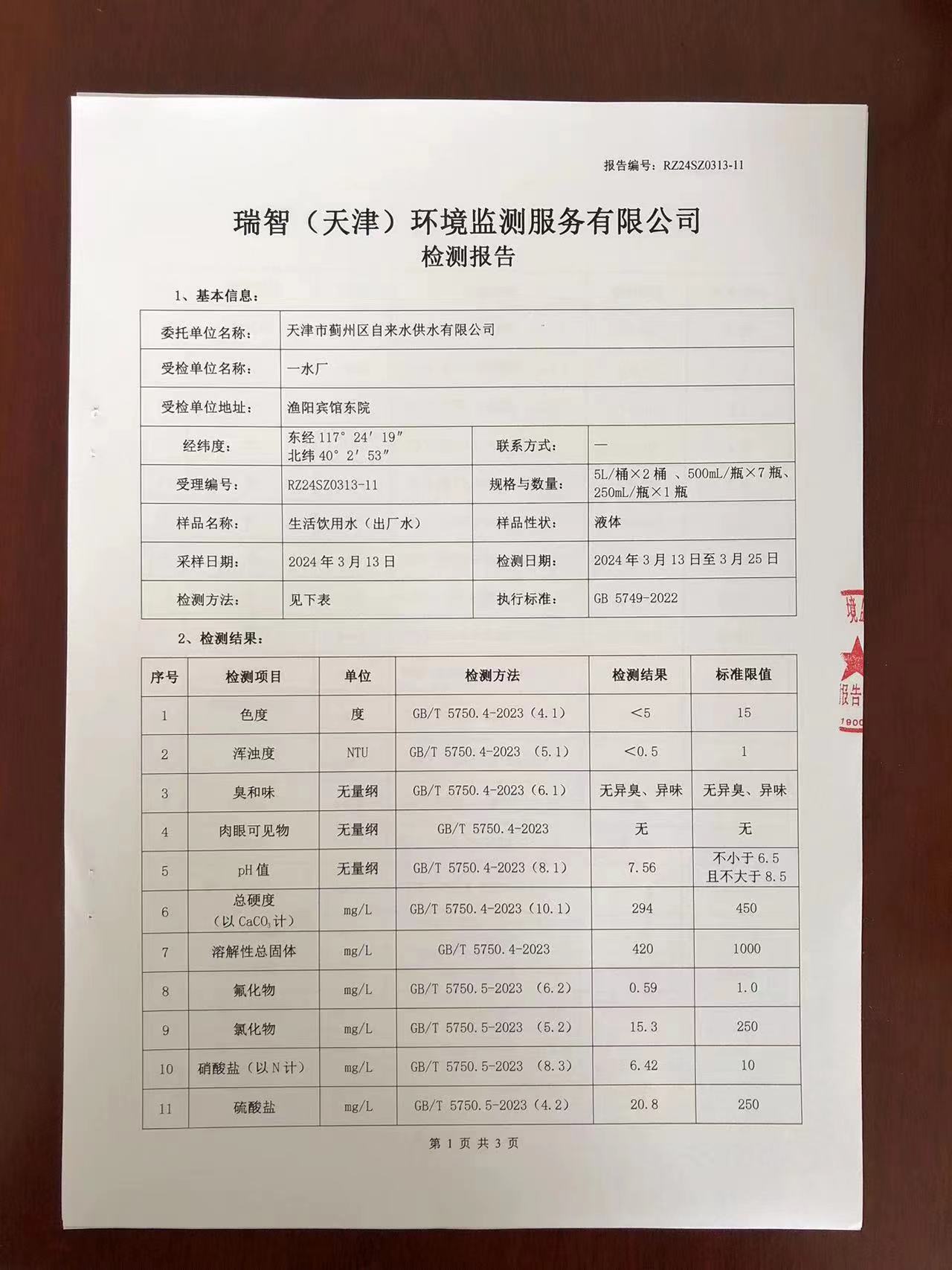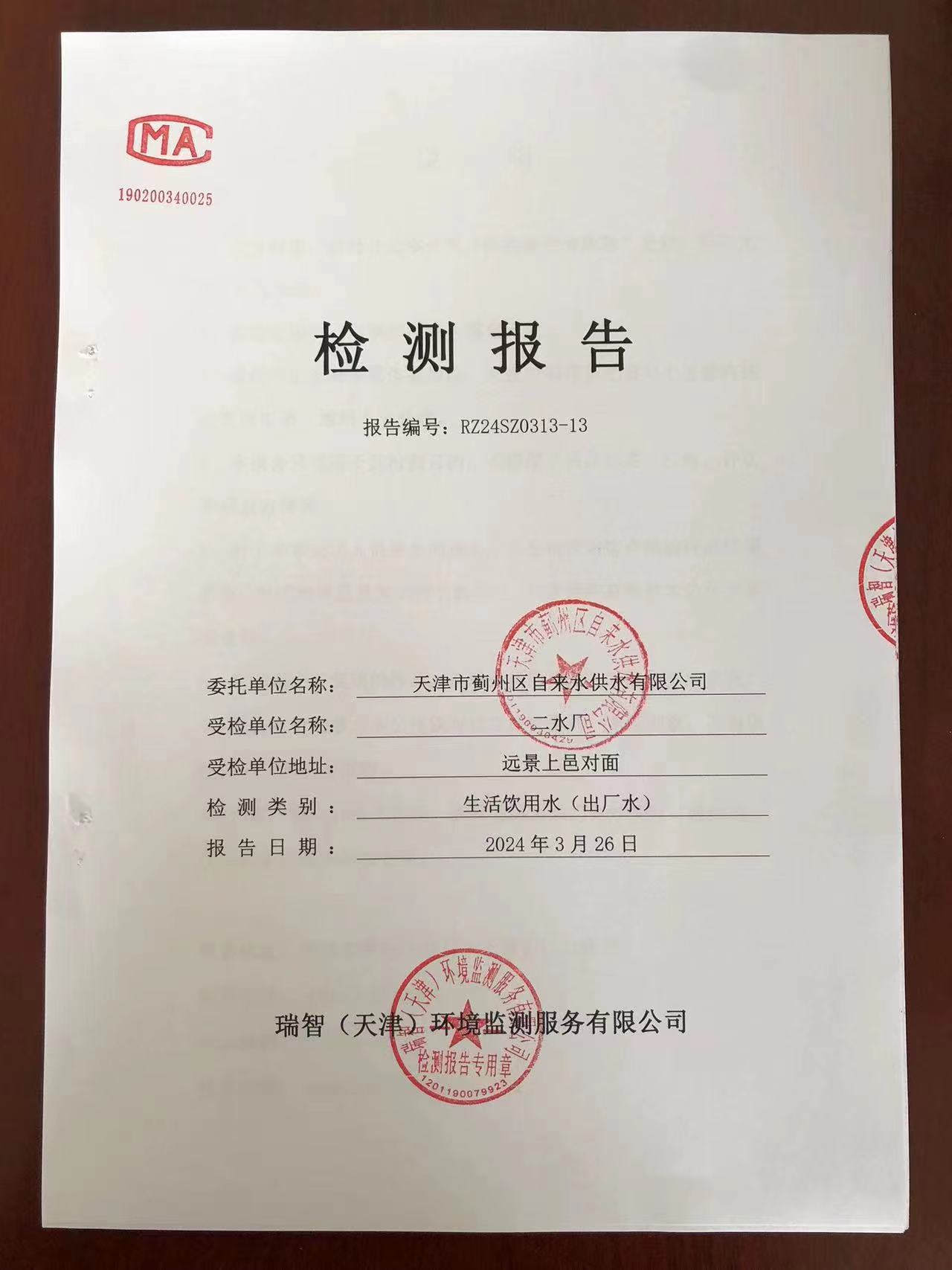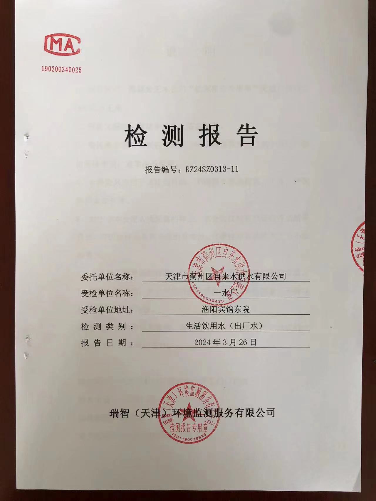 2024年3月份水質(zhì)檢測報(bào)告
