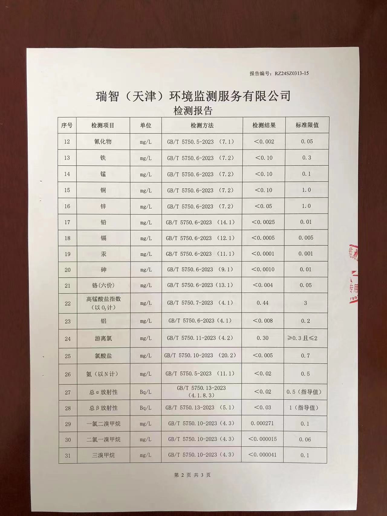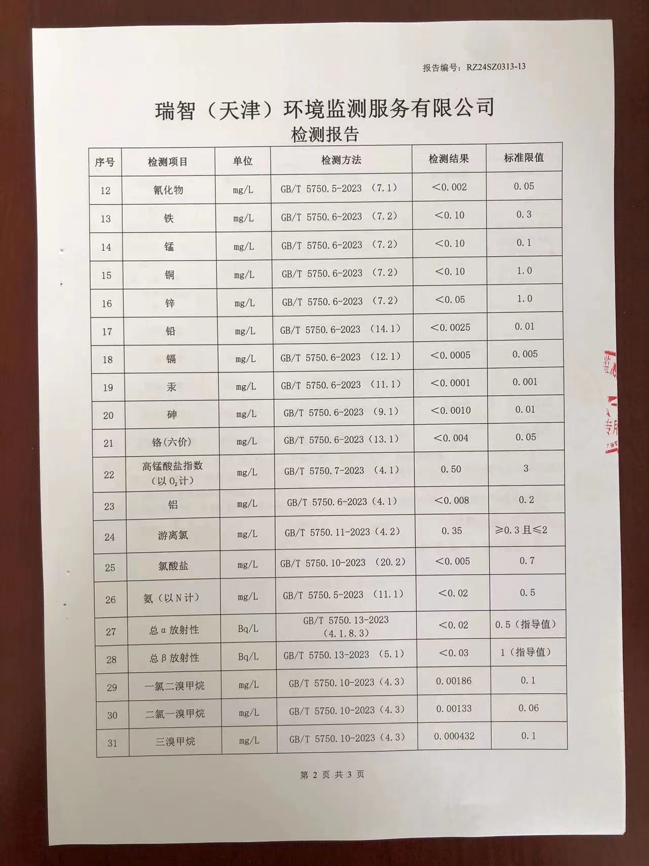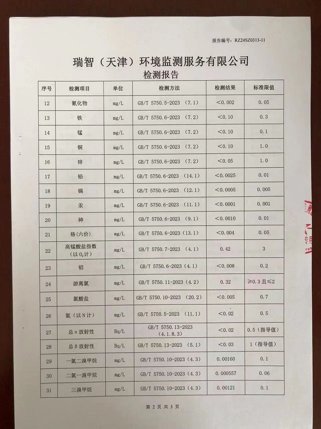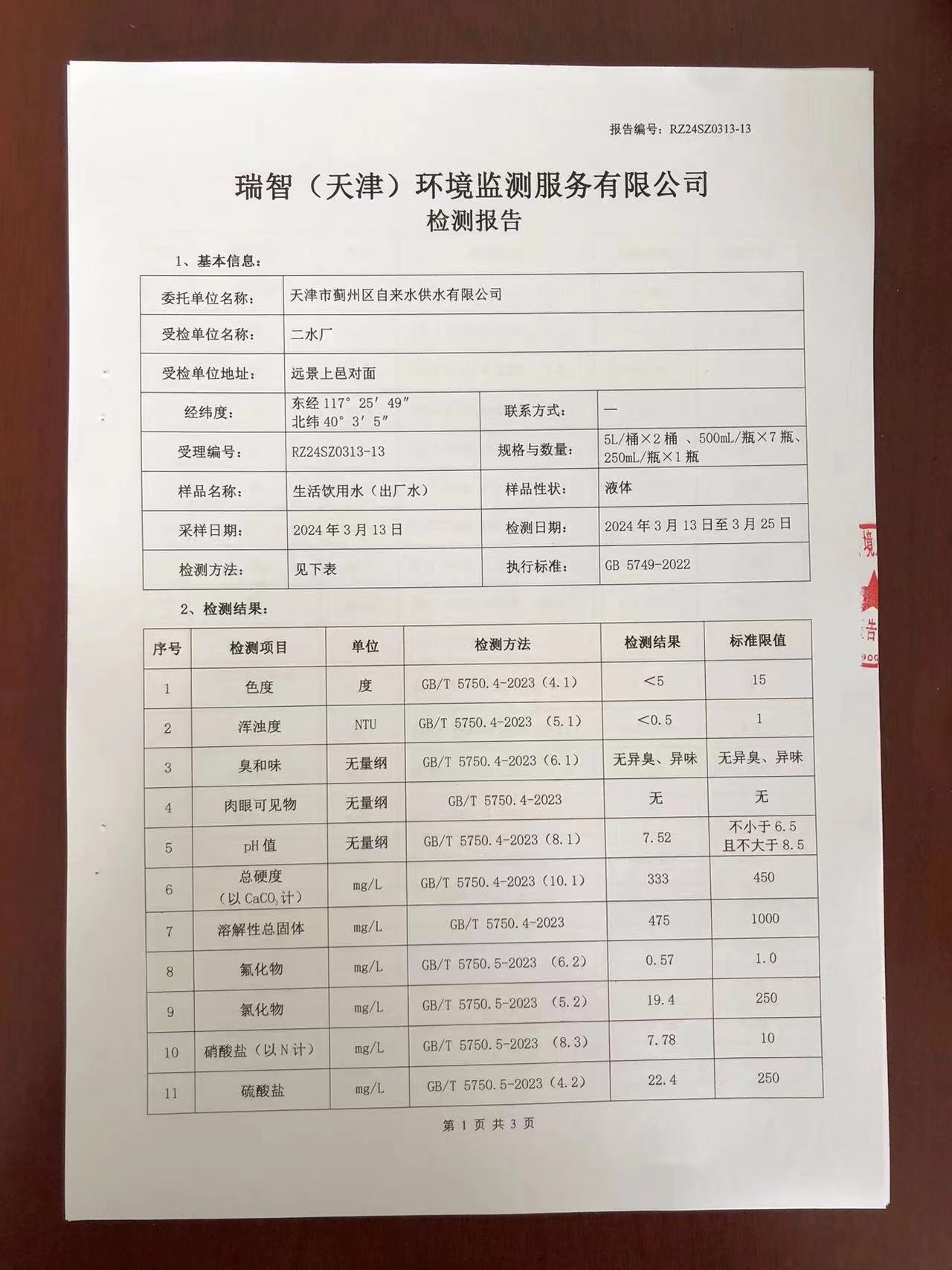 2024年3月份水質(zhì)檢測報(bào)告