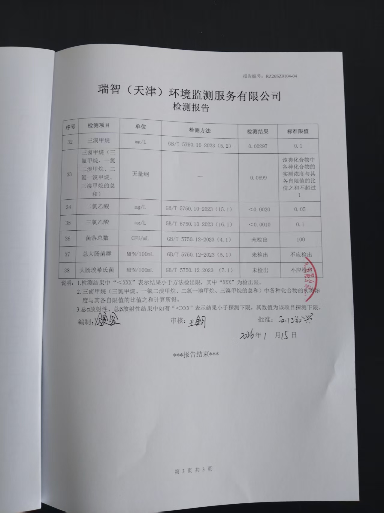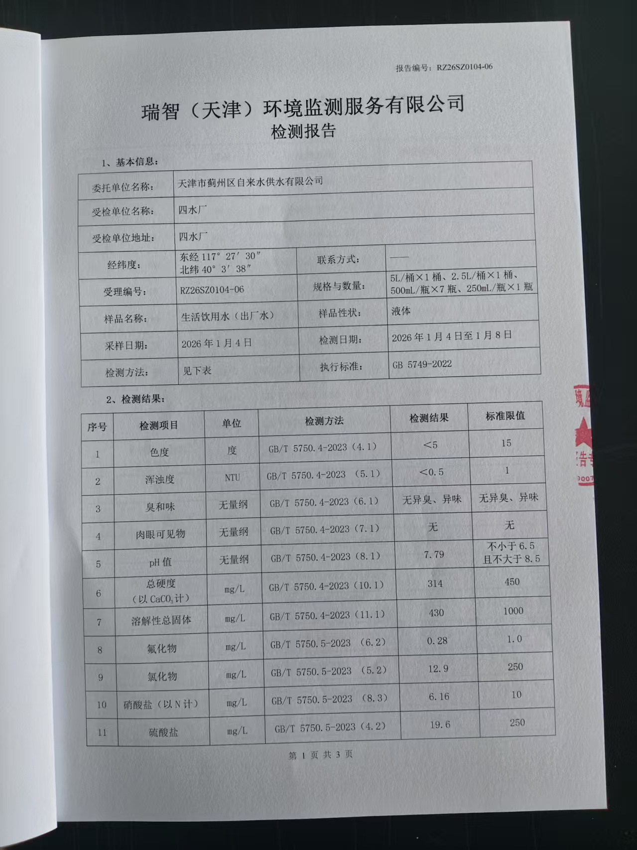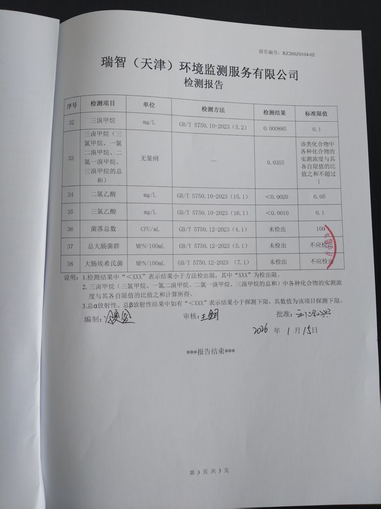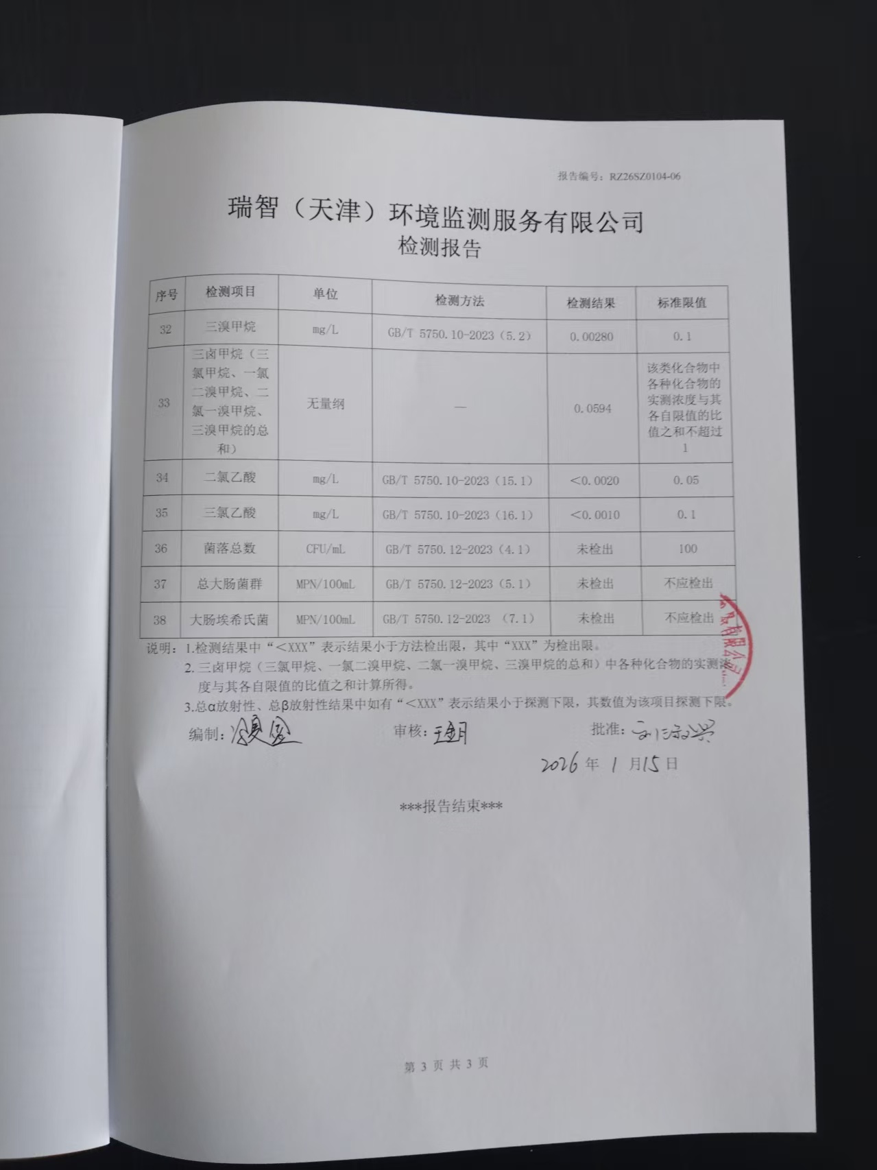 2026年1月份水質(zhì)檢測(cè)報(bào)告