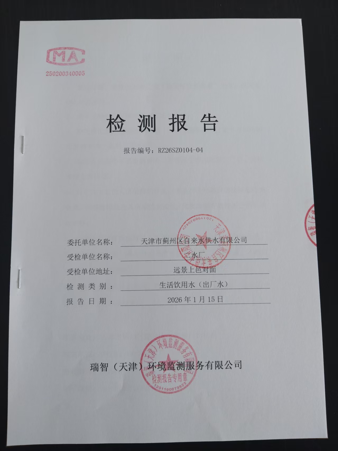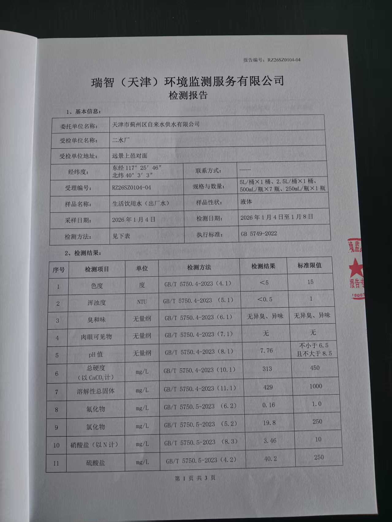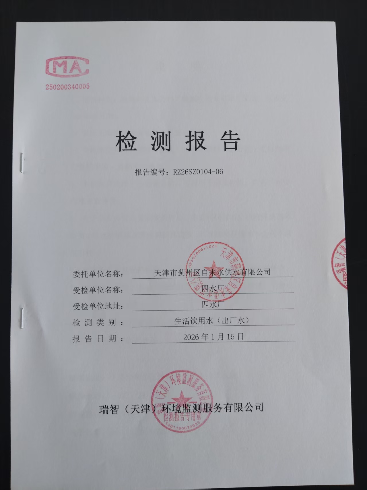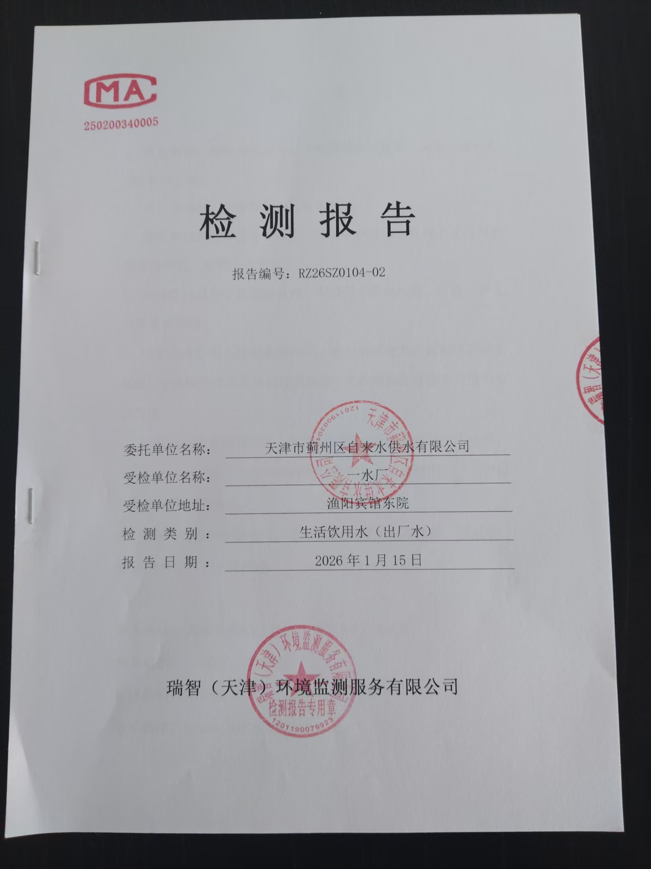 2026年1月份水質(zhì)檢測(cè)報(bào)告