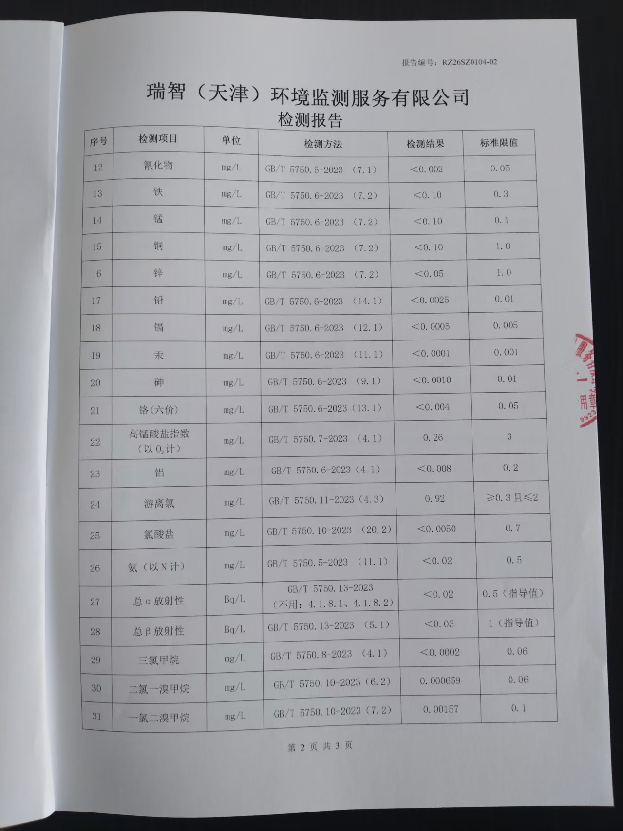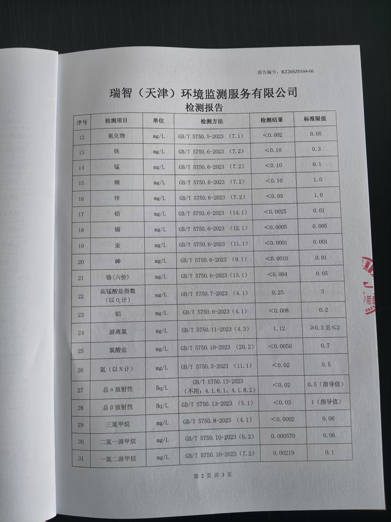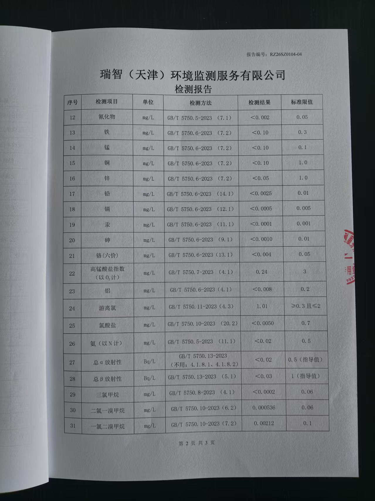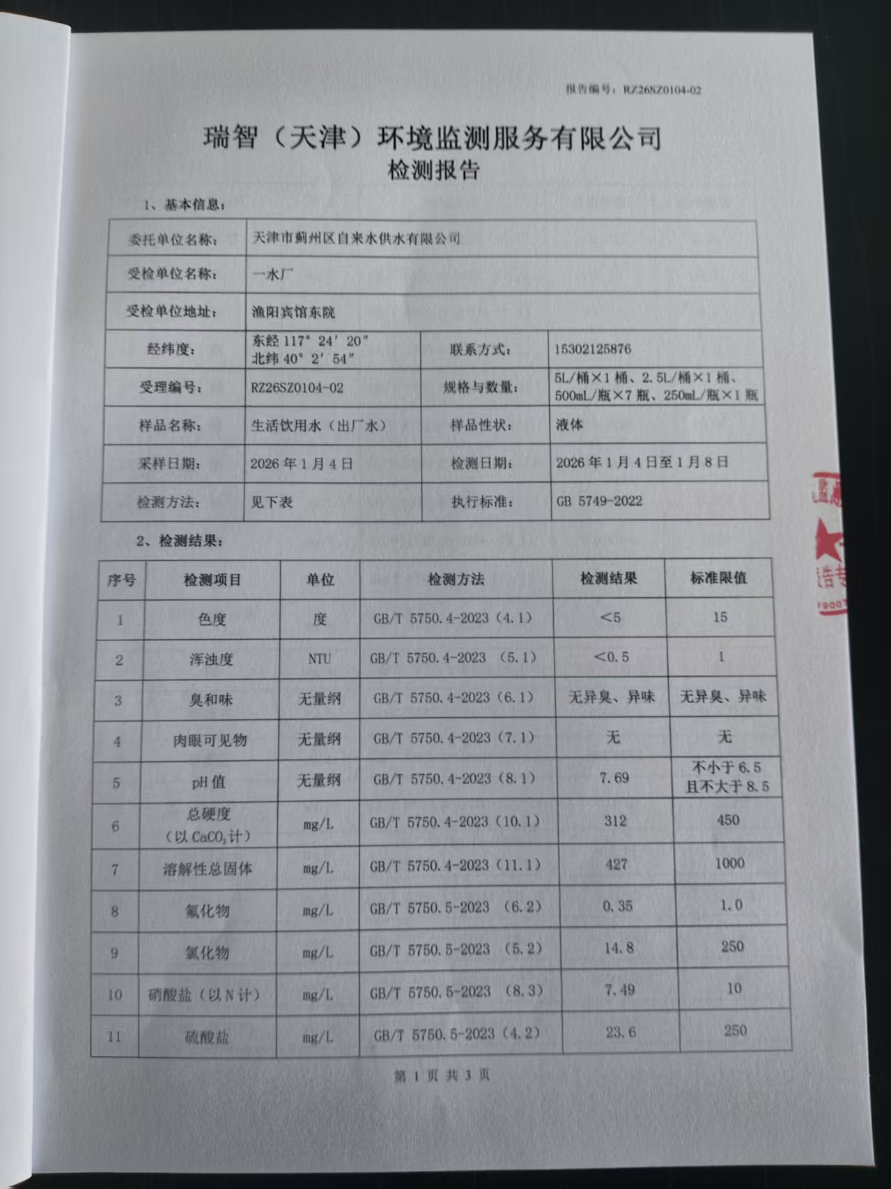 2026年1月份水質(zhì)檢測(cè)報(bào)告