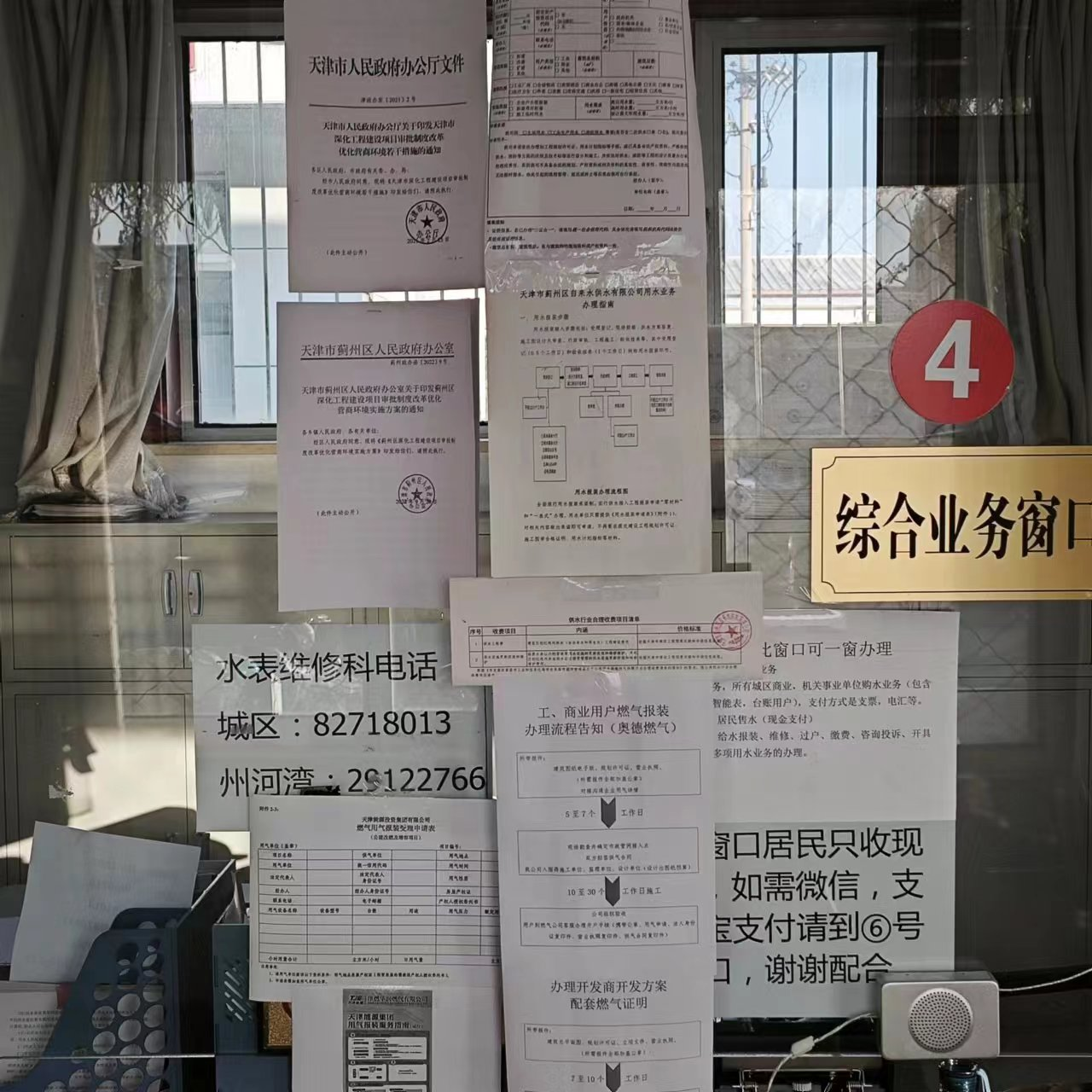 天津市薊州區(qū)自來水供水有限公司落實一窗綜合受理的有關文件精神,在供水營業(yè)廳內(nèi)設置綜合業(yè)務窗口實現(xiàn)多項供水服務一窗式辦理。