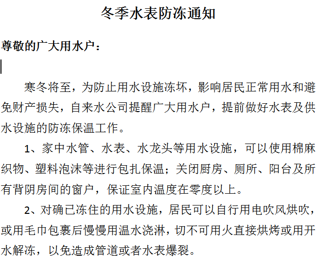 冬季水表防凍通知